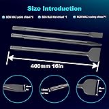 Package Include: Point chisel x 1, Scaling Chisel (50MM) Width x 1, Flat chisel 1" (25MM) Width x 1, 24" (400MM) Length, much easier and more comfortable for operation Standard Fit: SDS Max Shank, fully compatible with all SDS Max rotary hammers, breakers, and jackhammers, offers enhanced adaptability and ease of use, catering to diverse operational needs Durable Material: Made of 40Cr alloy steel for exceptional durability and longevity Versatile Use: Suitable for home demolition work or demolition in any scene, and can remove cement, tiles, etc Multi-Purpose Tool: Ideal for breaking through tiles, concrete, brick, mortar, granite, masonry and other tough substances