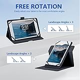 Wide Compatibility for 6-7 Inch Tablets This universal case is designed to fit most 6-7 inch tablets, compatible with Android, iOS, and Windows devices from brands like Samsung, Fire, Lenovo, Dragon Touch, and more. 360-Degree Rotating Stand The built-in 360-degree rotating stand allows flexible viewing in both portrait and landscape modes, making it ideal for watching videos, reading, or video calling hands-free. Premium PU Leather Protection Crafted with durable PU leather and a soft microfiber interior, this folio case offers all-around protection against scratches, drops, dust, and everyday wear. Adjustable Multi-Angle Viewing Multiple anti-slip grooves let you position your tablet at various angles for comfortable typing, browsing, or media viewing with enhanced stability. Secure Elastic Corner Straps Equipped with strong elastic bands at all four corners, this case holds your device firmly in place without obstructing ports, buttons, or cameras, ensuring easy access and a snug fit.