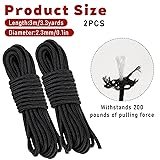- Specifications:Material: PolyethyleneColor: BlackProduct size:Diameter 2.3mm/0.1in,Single length 3m/3.3yards, 9.8 feet Packing list:D ring rope * 2 pieces