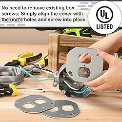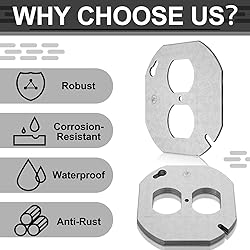 Certified Safety Assurance: each octagon duplex box cover in the package of five has earned authoritative safety certification through UL, ensuring compliance with North American electrical safety standards Ideal Fit and Protection: engineered specifically for 4 inch octagonal box designs, these octagon duplex box covers fit snugly to the box, effectively sealing off openings; This precise fit prevents dust and debris from entering, safeguarding the internal wires and connections Durable Galvanized Steel Construction: crafted from galvanized steel, the octagon duplex box covers are treated with anti rust processes for nice corrosion resistance; These durable covers withstand a variety of environments dry, damp, or dusty, such as kitchens, bathrooms, and garages Effortless Installation: thanks to the key hole design, installation is a breeze; No need to remove existing box screws; Simply align the cover with the unit's holes and screw into place Versatile Application: featuring a smooth surface devoid of protrusions, these octagon duplex box cover aren't just ideal for standard receptacle boxes— they also accommodate lighting fixture installations like recessed or spotlight bases