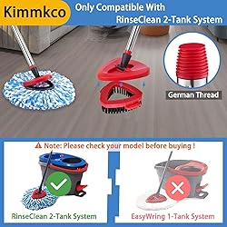 【Compatible Models】: Kimmkco mop replace head, mop base and mop handle set is ONLY compatible with Ocedar RinseClean Spin Mop. NOTE: The mop heads replacements accessories set only compatible with 2-Tanks RinseClean system, NOT compatible with 1-Tank system 【Reusable And Eco-Friedly】: The Microfiber mop replacement head is machine washable and easy to clean, Simply throw it in the washing machine after use, no need to touch the dirt again, our rotating mop refill will last a long time 【Great Value Set】: The mop head replacement parts perfect fit for original O cedar 2 Tank System (4 Mop Replacement Heads+30" to 58" Mop Handle+1 Mop Base+1 Scrubber Mop Head,) . The set are the ideal solution for saving money, replacing worn-out or damaged components of your O Cedar RinseClean 2 Tank system 【Microfiber Mop Refills】: The mop heads replacement are made of 100% microfiber that are super easy to clean the dirt and dust, perfect for smooth surface floors, such as hardwood floors, ceramic tile, laminate floors, marble floors and glass windows. Durable and machine washable 【Adjustable 30-58 Inches Mop Pole】: The mop replacement handle is made of high quality stainless steel, strong and durable. Comes with a 4-section mop stick that adjusts from 30 inches to 58 inches, no more bending over, saving your back and waist 【Muiti-purpose Applications】: Suitable for deep cleaning of smooth surfaces such as wood, tile, laminate, marble and other sealed hard floors. As well as windows and cars. Can be used dry or wet. Dry mopping is used to clean hair and dust. Wet mop for stain removal. Great choice your multiple cleaning needs