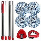 Small Spin Mop Replacement Head for O Cedar RinseClean 2-Tank System, 4 Fluffy Microfiber Mop Refills with 1 Small Base & 1 Scrubber Head & 30-58in Mop Handle, Deep Clean, Machine Washable