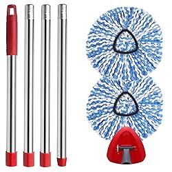 【Compatible Models】: Kimmkco mop replace head, mop base and mop handle set is ONLY compatible with Ocedar RinseClean Spin Mop. NOTE: The mop heads replacements accessories set only compatible with 2-Tanks RinseClean system, NOT compatible with 1-Tank system 【Reusable And Eco-Friedly】: The Microfiber mop replacement head is machine washable and easy to clean, Simply throw it in the washing machine after use, no need to touch the dirt again, our rotating mop refill will last a long time 【Great Value Set】: The mop head replacement parts perfect fit for original O cedar 2 Tank System (2 Mop Replacement Heads+30" to 58" Mop Handle+1 Mop Base) . The set are the ideal solution for saving money, replacing worn-out or damaged components of your O Cedar RinseClean 2 Tank system 【Microfiber Mop Refills】: The mop heads replacement are made of 100% microfiber that are super easy to clean the dirt and dust, perfect for smooth surface floors, such as hardwood floors, ceramic tile, laminate floors, marble floors and glass windows. Durable and machine washable 【Adjustable 30-58 Inches Mop Pole】: The mop replacement handle is made of high quality stainless steel, strong and durable. Comes with a 4-section mop stick that adjusts from 30 inches to 58 inches, no more bending over, saving your back and waist 【Muiti-purpose Applications】: Suitable for deep cleaning of smooth surfaces such as wood, tile, laminate, marble and other sealed hard floors. As well as windows and cars. Can be used dry or wet. Dry mopping is used to clean hair and dust. Wet mop for stain removal. Great choice your multiple cleaning needs