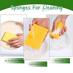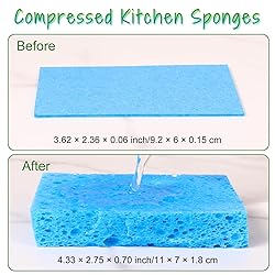 【Package Contents】Our kitchen sponges bulk pack includes 100 pieces of natural cellulose sponges, perfect for pairing with dish soap. Available in five vibrant colors: yellow, gold, blue, green, and pink, these sponges for dishes are ideal for daily use and sharing 【Material & Size】Crafted from high-quality wood pulp, these compressed sponges expand to 4.33 x 2.75 x 0.70 inches when wet. The small sponges offer a comfortable grip, making them perfect for cleaning dishes, countertops, and more without scratching 【Scratch-Free Cleaning】Our mini sponges are designed to be gentle on all surfaces, ensuring a scratch-free clean. Use these kitchen sponges pack with dish soap for effective cleaning of pots, pans, glassware, and delicate items 【Versatile Use】Perfect for household cleaning, our bulk sponges are suitable for a variety of tasks. Whether you're scrubbing dishes or cleaning windows, these natural sponges provide the power and precision you need for a spotless finish 【Eco-Friendly & Hygienic】These disposable sponges are compostable, making them an environmentally friendly choice. The sponge's fiber holes allow for quick water absorption and fast drying, preventing dust accumulation