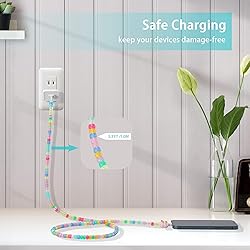 Colorful Grow Beaded USB C Cable : This funny glow in the dark pony beads usb to usb c cable with 1Pcs Cute Phone Cable Protector. ✨ NOTE: Funny novelty usb c charger cable after the sunlight or other light will light up in the dark✨ Fast Charging & Data Sync: This beaded usb a to usb c cable charging is super fast ,conforming to the usb type c specification version 1.1,56kilohm, standard identification,which ensures a safe charging at 3.0A Maximum.No damage to your legacy USB hub.enjoying the data sync & charge anywhere and anytime. Universal Compatibility USB C Cable : This grow beaded usb to usb c cable compatible with virtually all USB-C devices including phones,tablets and laptops.Charging for iPhone 17/17 Pro/17 Plus/17 Pro Max/16/16 Pro/16 Plus/16 Pro Max/iPhone 15/ 15 Pro/ 15 Plus/15 Pro Max/iPad Mini/Pro/Air, for Samsung Galaxy S24 S24+ S24 Ultra S23 S22,MacBook Air,iPad Pro/Air/Mini and more Durability Fast Data Cable: Our funny usb to usb c cable uses high-quality smooth rainbow color light up beads.They are polished carefully and combined with durable PVC material to make for flexible usb c cables,which allows high-strength bending and long-lasting use without breaking. Stylish elegant colorful beaded usb c cord goes great with your expensive gadgets. User-friendly Design: The usb c charging cable with perfect length of the cable (3.3 FT/1M )makes it suitable to be used in couch,bed,office or even backseat of your car while your device is charging. Cute beads usb c charger cable thanks to exceptional flexibility, remains tangle-free even when stuffed into a bag or pocket