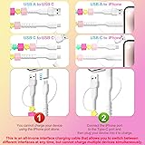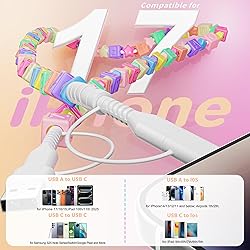NOTE! This is a 4-to-one charging cable. If you're using the upper port, connect it to the lower port before plugging it into your device's charging port. The upper port cannot be used alone. For faster speeds, use it with a USB-A/USB C charger with fast charging. Eliminate the clutter of cables and save space in your car. USB Multi Charging Cable: The USB A/USB C to C cable is compatible with iPhone 17 Air Pro Max, iPhone 16 Pro Plus Pro Max, iPhone 15 Pro Plus, Pro Max, Samsung Galaxy S23 S23+, S23 Ultra/S22, Google Pixel XL, MacBook Pro/Air M2 13'', iPad A16 11th Gen; iPad 10th Gen iPad Air 4/5, etc. And the USB A/USB C to iPhone (iOS Port) is compatible with iPhone 14, 13, 12, 11, plus Pro Max, iPad 9th/8th/7th, MacBook, etc. Exclusive Designs: XNMOA's Candy Bead Charging Cable features square beads paired with plump, cartoon-style stars for a fun and unique appearance. Strung in a calming pastel palette of pink, blue, orange, purple, and green, it adds a pop of playful personality to any space. For a custom touch, each square bead is engraved with a letter. It's not just for cable—it's a cute tech and lifestyle accessory. Support 60W Max Fast Charging & Data Sync: Our phone charger cord supports high-speed up to (480Mb/s data transfer. USB charging cable can be used for fast charging and transferring photos, music, videos, files, and more simultaneously, improving work efficiency. Double-layer thick protection on the interface to extend its service life. MFi Certified USB Charging Cable: The built-in MFi-certified chip in this beaded charger cable can intelligently identify and control the charging temperature to prevent the phone from short-circuiting, overcharging, and overheating. The MFi-certified USB charging cable for iPhone devices ensures faster charging time of charge and device safety, extending the life of your device.