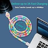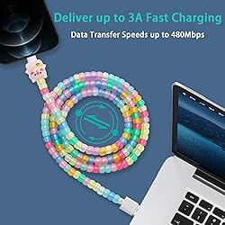 Grow Pony Beaded for USB C cable : This cute glow in the dark pony beads for type c cable with 1Pcs Cute Phone Charger Cable Protector.Funny novelty usb c cord after the sunlight or other light will light up in the dark🤗Even in darkness, there will be the dawn of light🤗 Fast Charging & Transmission : Our glow cute beaded usb-c to usb-c cable is designed with top-quality materials, featuring a high-purity copper core and intelligent chip that ensuring both your safety and the longevity of your device.Funny chubby beads usb c cable with the capability to support up to 3.0 A fast charging and 480 Mbps transfer speed, our cable offers fast charging and syncing Universal Compatibility USB C Cable : This grow beaded usb c to usb c cable compatible with virtually all USB-C devices including phones,tablets and laptops.Charging for iPhone 17/17 Pro/17 Plus/17 Pro Max/16/16 Pro/16 Plus/16 Pro Max/iPhone 15/ 15 Pro/ 15 Plus/15 Pro Max/iPad Mini/Pro/Air, for Samsung Galaxy S24 S24+ S24 Ultra S23 S22,MacBook Air,iPad Pro/Air/Mini and more Long-Lasting Durability for USB C charger cable: This personalized fast charging usb c to c cable full body with beaded ,prevents tangling and ensures the phone fast charger cable can endure over 50,000 bends.Flexible and robust materials,it can withstand a pulling force of up to 95KG. Perfect Length for USB C Cable: The 3.3FT (1.0 M ) colorful beaded type c cable provides sufficient reach for convenient use while minimizing clutter and tangles. Lightweight and compact design makes this cute chubby usb c cable easy to carry,perfect for home, office,traveling,car and more ocassion