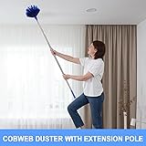 Cobweb Dusters with Extension Pole 100-inch, Spider Web Brush & Ceiling Cleaning Kit, Washable Cleaning Duster Kit with 2 Duster Heads, Cobweb Duster, Corner Brush for Ceiling Fan, Furniture, Home