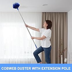 Extendable Design: Our telescopic dusting wand is crafted from stainless steel, extending from 30 inches to 100 inches. Effortlessly clean high ceilings, corners, and ceiling fans without a ladder. Dual-head design: Equipped with two cleaning heads—including one cobweb brush and one microfiber dusting brush—effortlessly handles all dusting needs. Washable and easy to store: The dusting brush head is easy to disassemble and clean. After removing the handle, rinse the brush head with warm water, air-dry it in a well-ventilated area to restore its fluffiness, and it's ready for reuse. The process is simple and convenient. Flexible Design for Hard-to-Reach Spots: The extra-long, ultra-fine fiber dusting brush features a built-in bendable metal rod, allowing you to freely adjust its shape. Cleaning ceilings, fans, vents, and other hidden areas becomes effortless. Comprehensive Cleaning: This set includes 2 cleaning brushes and 1 telescopic pole, enabling deep cleaning in hard-to-reach corners for efficient and thorough results. Create a dust-free, cobweb-free environment.