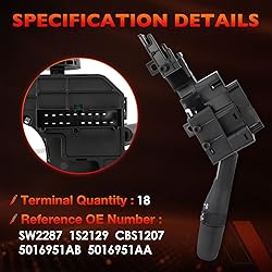 [Precise Fit & Compatibility] This multifunction combination switch is engineered as a direct replacement for the 2001-2005 Chrysler PT Cruiser, ensuring an exact OEM fit and seamless integration with your vehicle's steering column. [Comprehensive OEM Replacement] Replaces multiple OEM part numbers including CBS-1207; CBS1218; 05016951AB; 5143-311AB; 5143-311AE; 5143311AA; 5143311AB; 5143311AC; 5143311AF; 1802-306826; 1S2129; 1S7756; 2330875; 5073049AA; 53-16835; CBS1207; CBS5291; SAE1195; SW2287; SW5291; TSS54 [Restored Full Vehicle Control] Regain complete command of essential functions including turn signals, high/low beams, windshield wipers, and washer controls with a single, reliable lever, restoring both convenience and safety. [Durable Construction & Reliable Performance] Manufactured from high-impact resistant plastics and featuring premium copper alloy conductors for superior electrical conductivity, ensuring long-lasting durability and trouble-free operation. [Easy Installation & Hassle-Free Warranty] Designed for straightforward plug-and-play installation to quickly replace your faulty switch. Backed by a 12-month warranty with dedicated customer support for replacement or refund assistance.