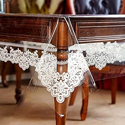 ARTABLE Clear Table Cloth Protector Vinyl PVC Rectangle with Floral Print Pattern Oil Proof Wipe-able Plastic Tablecloths for Dining Tables Parties Holidays (Lace-2, 104" x 60" (Rectangular))