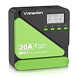 Vansdon 20A Solar Charge Controller 12V/24V MPPT Solar Charge Controller, Adjustable LCD with Timer, Dual USB Ports, for RV, Boat, Cabin, Off-Grid Systems, Compatible with FLD/LiFePO4/SLD/GEL/AGM