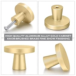 - Features: You can share these cabinet handles with your family, friends, neighbors and so on, which can show your warm heart and kindness. The closet door knob is made of quality aluminum alloy, and it has been processed by aluminum alloy wire drawing oxidation and fine processing, which are comfortable to hold, proper for decorating your home, creating a modern and stylish adornment to your home. Specifications: Material: aluminum alloy Color: brushed gold Size: Top diameter: 32 mm/ 1.26 inches Base diameter: 12.7 mm/ 0.5 inches Height: 26 mm/ 1 inch Silver short screw: approx. 4 x 25 mm/ 0.16 x 0.98 inches Silver long screw: approx. 4 x 45 mm/ 0.16 x 1.77 inches Package includes: 15 x Aluminum alloy cabinet knobs 15 x Silver short screws 15 x Silver long screws Notes: Manual measurement, please allow slight errors in size. The color may exist a slight difference due to different screen displays. Small parts included, please keep away from children