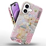 Case Compatible with iPhone 17,Scratch Resistant Hybrid 2-Layer Hard Shell Phone Case,Pink Vintage Aesthetic Collage