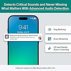 Leave No Blindspots with Plug-In Pan & Tilt: Dependable 2K indoor security to monitor your furry friends in clear 360º video & Dual-Band Wi-Fi connectivity. Get real-time alerts & Smart Detection you can count on, all with uninterrupted plug-in power. Custom Alerts That are Important to You: Create specific notifications when your dog jumps on the couch, your cat sits on the kitchen table, or your bird makes an escape. Stay connected wherever you are while avoiding false alarms. Peace of Mind That Goes Beyond What Meets the Eye: Advanced Audio Detection helps you stay aware if your dog is barking or a baby is screaming. Respond quickly when something important happens. Enhanced Protection with 1-Month Secure Plan Included: Access 60-Day video history, Custom Alerts, Advanced Audio Detection, Smart Detection, Activity Zones, 24/7 Emergency Response & more. After trial, subscription plans start at $17.99/month (billed annually). Complete Coverage: Monitor every corner of your home with confidence using 360° pan & 180° tilt with automatic motion tracking. Set it it to patrol & follow your pet as they move around the living room. On-Demand Privacy: Keep eyes on your pets when you're away, & enjoy privacy when you're home. Check in when you need to & switch off when you don’t. Monitor pets remotely, then automatically flip the camera lens down & out of view when home. Trusted, Real-Time Protection: Get motion alerts, 2K live video, 12x zoom, & remote siren control from the Arlo Secure App. Features Night Vision, 2-Way Audio. Easy setup with Dual-Band Wi-Fi connects to the strongest signal. Arlo Protects Your Everything, Including Your Privacy: We're passionate about safeguarding your home & your data. Proudly designed in the USA, Arlo delivers innovative, reliable security products that keep your personal information in your control. Expert support at your fingertips: Access help through the Arlo app & connect with our community to learn & share. 24/7 chat support available via app or website. Product use & support for United States only. Control Your Device With Smart Home Partners: Works with Alexa, Samsung SmartThings, IFTTT & Google Home. Have your smart device check-in around your property, announce motion alerts or visitors, & automate routines like turning on lights when motion is detected.