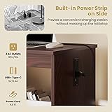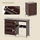 Ample Storage Options: With the spacious tabletop, this sewing table offers plenty of room for your sewing machine and tools. Plus, this craft table includes 3 storage bins and an open shelf to keep your crafting supplies and accessories neatly organized. Concealed Power Center: This collapsible sewing desk comes with a hidden charging station on the side, completing with 2 AC outlets, 1 USB port and 1 type-C port to ensure your devices remain charged and your tabletop stays tidy. Foldable Sewing Desk : Easily switch between a sewing table, computer desk or side table with the folding design, this rolling cart for sewing is adaptable to versatile use. When it's time to tidy up, simply fold the table to save on space. Mobile Convenience: With 5 universal wheels (3 lockable), the sewing station can be effortlessly moved to different locations. Once settled, the locking mechanism ensures the craft desk will stay securely in place for stability while you work. Practical Functionality: By utilizing a spring latch, the sewing cabinet remains safely shut when not in use. Easy access is provided through a magnetic catch mechanism. Additionally, anti-collision pads are incorporated to mitigate potential damage.