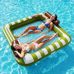 - Funscape Large Inflatable Pool Float, Water Floating Hammock Tanning Pool Lounger for Adult, 76" x 67" Sun Bathing Tan Bed, Swimming Water Raft Floatie W/ Mesh Mat, Summer Beach Lake Party Gifts Green