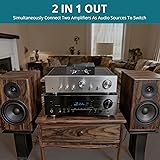 【Flexible Audio Control】Independently switch between two zones or amplifiers with easy-to-use on/off switches. This speaker selector supports one amplifier driving two speakers or two amplifiers driving one speaker, providing versatile audio layouts 【Plug and Play, Passive Design】This passive speaker switch requires no external power. Simply connect your speaker wires to the spring clip terminals for instant setup. Enjoy quick, tool-free installation with no complicated configurations 【Professional Multi-Zone Audio Management】Our speaker switch selector is your cost-effective solution for direct multi-source audio control, serving as a powerful alternative to expensive multi-zone amplifiers. It enables you to effortlessly manage speakers across different rooms without any compromise on sound fidelity 【Long-Distance Stable Audio】 Supports up to 50 meters (164 feet) of speaker cable, ensuring consistent and high-quality audio transmission even in large rooms or commercial spaces 【High Power Handling】Engineered to handle up to 150W RMS per channel, this robust speaker switch box guarantees broad compatibility with 4 to 16-ohm speakers. It's the perfect, reliable core for your home stereo and a must-have for DIY audio projects requiring serious power