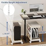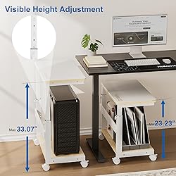 Height Adjustable PC Stand: This PC stand white for floor has a large height adjustment range. You can adjust the height from 23 inches to 33 inches according to the height of the table and the space requirements. The vast majority of computer cases on the market can be placed on this stand. This PC holder under desk gets your PC off the ground which can help air flow. It provides a perfect place for the radiator and makes easy to clean your CPU and around it Multi Functional Storage: The PC tower stand is a 2-tier minimalist design. The bottom shelf can support big PC towers and the top shelf can be used to place printers, laptops, monitors, power strip. The white CPU cabinet comes with a stylish mouse pad to protect the top wooden board. The large usage area allows you to find the most comfortable hand position. We also prepare a portable headphone stand for you. It can be easily clipped onto the desktop or removed. We fully consider your needs Exquisite Workmanship & Reliability: The computer stand white is made of thickened high-quality alloy steel and has undergone special surface treatment, which not only prevents rusting but also reduces the risk of scratches in daily use. The upper and lower parts for PC holder are made of wooden boards, with a delicate touch. In a stationary state, the maximum loading capacity of the bottom board is 88 pounds, and the maximum loading capacity of the top board is 66 pounds Space Saving & Silent Wheels: Computer stand white can be placed on the side of your desk, opening up an extended workspace. It can perfectly blend with your gaming chair in the game room. Storing and organizing items for the studio is also a good choice. All silent wheels can be locked, so the PC cart will not accidentally moving. It can move smoothly on floors and carpets without damaging the floor. Please note that the loading weight of the entire stand must not exceed 88 pounds when moving Easy to Assemble: We provide all installation tools and accessories. You can assemble this PC stand for floor by yourself according to the instructions provided. You can contact with our customer service team for any installation or product issues. We have a professional technical team to provide assistance. Resolve all doubts during installation until the rolling computer cart perfectly assembled and used