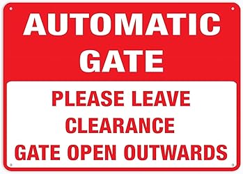 Automatic Gate Please Leave Clearance Gate Open Outwards - Rust Free Aluminum Signs Outdoor Metal Tin Sign for Home Business Yard Durable Weatherproof Clear Operation Instruction 8X12 Inch