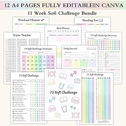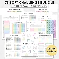 - Premium A4 Soft-Touch Planner (11.69" x 8.27") - Features an elegant, durable cover with sturdy spiral binding. The perfect compact size for daily planning, meal tracking and productivity, with wear-resistant construction that lasts. 75-Day Goal Achievement System: This soft challenge tracker features editable templates with progress sections to help you accomplish short and long-term goals. Stay motivated while tracking 75 easy challenges in one compact organizer. Flexible 75-Day Planner: Features ruled pages, dot grids, and challenge templates in a weekly/monthly format - customize your perfect planning system for personal or professional goals. Spiral bound 12 page soft challenge plan book Convenient spiral bound flat placement, perfect for daily use and easy portability on the go. Whether at home, in the office, or on the go, this reusable notebook diary keeps you organized, ready to achieve daily goals and track your progress at any time. Perfect Gift Idea: The elegant A4 Soft Challenge Planner (11.69"x8.27") makes a thoughtful present for goal-setters. Its beautiful design and practical organization system help capture life's special moments while achieving personal growth.