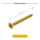 Made of stainless steel to suit hardware components requiring resistance to regular use and exposure in interior environments. Polished Brass finish helps match modern architectural hardware commonly used in doors, wall plates, or other building elements. 10 x 2" sizing with M10 threading supports general replacement needs in structural or mounted hardware systems. Flat head design helps sit flush against mounting surfaces, providing a uniform attachment profile without protrusion. Features a Phillips drive to support compatibility with common screwdrivers or power tools during replacement or setup. M10 thread size provides a stable fastening grip, designed for use in metal plates or wall-mounting bracket applications. Package includes 10 matching screws to support replacement or new installations of wall-mounted hardware components.