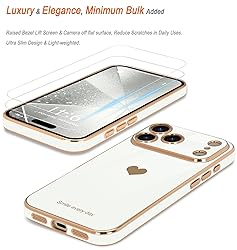 Compatible Models: Specially Designed for iPhone 17 Pro Max. Will match perfectly. Support wireless charging. Raised Bezel Camera Protection: Exquisite yet Practical Raised Lip design for the camera, giving some extra protection for the camera lens while not affecting the wide angel camera and flashlight using. High-Quality Materials: Made of TPU material, the case is Soft, Smooth, Durable and Easy to Clean. Premium Quality TPU grant a Soft Comfortable and moderate Sleek touch feeling while still manage to provide awesome drop protection and scratch resistance. Luxury and Stylish: Using electroplating technology, beautiful gold plating gracefully surrounds the bumper and camera edges, a perfect demonstration of your love for luxury and fashion.The case will surely stand out and bestows confidence and aesthetic taste to its master. Epic Precision: Teageo case follows every line of your Phone, and the form of the Silicone case fits snugly over the volume buttons, Sleep/Wake button, and curves of your device. Tactile button covers with responsive touch and easy access.