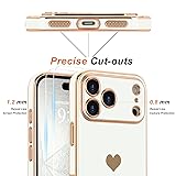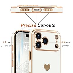Teageo for iPhone 17 Pro Max Case with Screen Protector [2 Pack] Girl Women Cute Girly Love-Heart Luxury Gold Soft Cover Camera Protection Shockproof Phone Case for iPhone 17 Pro Max, White