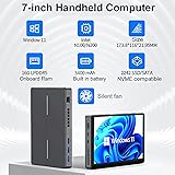 Mini PC with 7 inch Touch Screen, Handheld PC with N150(Upgrade N100) CPU LPDDR5 16GB Onboard, 516 SSD Wifi6 BT5.2 Battery 3400mAh, Micro Win11 Tablet Desktop Laptop Computer with Fan