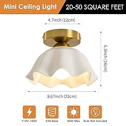 【Flower glazed ceramic lampshade】: Glazed ceramic is fired at high temperature of 1300°C. The texture is dense and smooth, transparent and soft and even, showing a warm and jade-like texture 【Clean and easy to clean with just one wipe】: Dust is not easy to adhere to glossy ceramics, and the wet cloth is lightly wiped like new immediately, saying goodbye to the trouble of cleaning light fixtures 【Corrosion-resistant and aging-resistant design】: The glazed ceramic layer isolates water vapor corrosion, is moisture-proof and rust-proof, and is not afraid of high humidity environments in the bathroom and kitchen. It will not turn yellow or crack after long-term use 【Set of 2 for Simple Nordic style versatile】 Small pendant lights are ideal for corridors,cottage, entrances, porches, mud rooms, stairwells, kitchens, closets, kid rooms, bathroom,Not only the household areas but also an ideal choice for commercial areas: bars, cafes, hotels and restaurants. providing excellent lighting effects 【E26 Medium Base Socket & Compatible with Various E26 Bulbs (Bulb Not Included)】: The bathroom ceiling light with standard USA socket is compatible with E26 medium base bulb (Bulb NOT INCLUDED), such as incandescent, LED, CFL and halogen bulbs (bulb maximum wattage is 100W). Choose the bulb you like to decor your dream home 【Easy & Fast Installation for Convenient Use】: The package includes all installation hardware and some spare screws to make your installation experience easier and faster. With step-by-step instructions, the installation of kitchen lighting fixtures ceiling is really simple, don't worry about it being difficult to install anymore 【Great Service】This entryway light fixture is fully assembled, just fix the metal canopy with the mounting screws and connect the wires. Please turn off the power before installing the ceiling light fixtures and read the instructions carefully. Your satisfaction is our first priority. If you have any problem of this small chandelier light fixture , please feel free to contact us, and we will give you a satisfactory answer within 24 hours