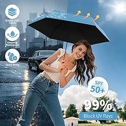 COMPACT TRAVEL UMBRELLA: Invest in Yoobure mini purse umbrella for portable travel essentials! Its 39.5" arched canopy offers cool shade and UV protection, yet folds down to a mere 7.1", perfectly fitting into your bags. Weighing just 0.55 lbs with a waterproof case, the compact umbrella is easy to carry around and re-pack! STURDY & WINDPROOF UMBRELLA - Made with silver aluminum shaft and anti-rust fibreglass ribs, the small umbrella is lightweight yet durable to withstand rain and wind. It is a super excellent choice if you need a reliable umbrella for daily use. 99% UV PROTECTION - An extra layer was added to form this UV umbrella in order to provide UPF 50+ protection which blocks 99% of UV rays. Additionally, this extra layer of UV protection will help you feel much cooler than other umbrellas when it is sunny and hot outside! WATERPROOF CASE AND IDEAL GIFT - The mini umbrella comes with a stylish waterproof case,exquisite and compact. Easy for storage and convenient to carry. Perfect gift for men, women, kids, students, parents, friends, colleagues or lovers. LIFETIME WARRANTY - We greatly value customers' shopping experience here. If you don't love your compact umbrella for any reason then just return it. Or, we'll replace it if you have any problems.
