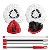 [Applicable Model]: The package comes 2 mop replace head, 1 scrubber head, 1 mop base and a set of adjustable mop handle set is ONLY compatible with O-Ceda EasyWring Microfiber Spin Mop 1 Tank System. Please check your bucket model before purchasing [2 Pack Microfiber Mop Refills]: The mop heads replacement are made of 100% microfiber that are super easy to clean the dirt and dust, perfect for smooth surface floors, such as hardwood floors, ceramic tile, laminate floors, marble floors and glass windows. Durable and machine washable [30-58in Mop Stick]: The mop replace handle is made of high quality stainless steel material, durable and sturdy for long-lasting use. It comes 4 section, can be adjusted from 30in to 58in. Short, tall and super tall people all of them can use it by adjust the height [Upgraded Scrub Brsuh]: The floor scrubber brush mop head brush made of high-quality nylon bristles, which is covered with full bristle brush with 182 hole. Stiff and dense for scrubbing stubborn stains. The scrub brush attachment is great for almost surface, likes tile floor, concrete floor, wooden floor, marble floor, glass surface, windows and wall [1 Pack Triangle Mop Base]: This mop head cover with a rounded triangle design, which can prevent the mop from hurting your furniture. All accessories are very easy to install and remove. For more effective cleaning, we recommend that you replace the attachments regularly. If you have any questions, please contact us, we are always by your side