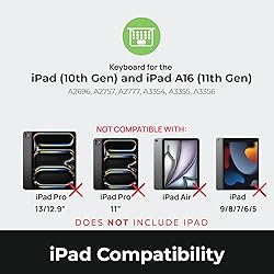 Compatibility: The Brydge 10.9 MAX+ fits the new iPad A16 with the 11" screen, and iPad 10th generation - iPad Model Numbers A2696, A2757, A2777, A3354, A3355, A3356. Not designed for use with the iPad Air, iPad Pro or iPad 9th Gen and older. Multi-touch trackpad: The 10.9 MAX+ iPad keyboard case features a large multi-touch trackpad. The spacious touchpad layout that enhances the immersive iPadOS experience. Navigating even the most complex workflows has never been easier. Detachable magnetic SnapFit Case: That is not only designed to semlessly fit your iPad, it's designed to protect it. It securely attaches to the magnetic back cover, allowing for a perfect productivity experience no matter the task. Instant-on-connectivity: Experience instant connection via Bluetooth 5.0 with zero lag. Enjoy a seamless experience just like Smart Connector-based keyboards, making it ideal for productivity and creative tasks without interruptions. Power meets precision: Featuring a protective case, adjustable backlit keys with 3 brightness levels, up to 3 months of battery life, and 135˚ screen rotation, this keyboard case blurs the line between tablet and laptop like never before.