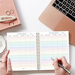 EASY TO MANAGE - The bill payment tracker notebook is designed to help you stay on top of your financial responsibilities by providing dedicated sections to track bills, payments, due dates, amounts. UNIQUE DESIGN - Monthly bill payment tracker inner paper is colorful, This bill payment organizer will help you to track your bill payments through last years. Great for small business owners, personal use or for family expense tracking. MANAGE YOUR FINANCES & SUCCEED - Use this bill payment tracker is perfect for your small business or your personal finance, You will be able to easily analyze your financial activities and quickly prepare accurate financial statements. HIGH QUALITY - The colorful bill payment tracker spiral notebook size of 8.5" x 11", just the perfectly size to fit in your backpack, purse or laptop case. Bill payment tracker monthly organizer is used to high quality 100gsm pure white paper, elastic band and a back pocket for extra space. it comes with 3680 entry lines (29 lines per page), make sure you have enough space to take control of your finances. PERFECT FOR - Use monthly bill payment log book for your personal or business finances, improve your productivity with this budget organizer.