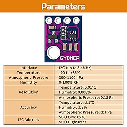 Main Function: Based on BME280 chip, it accurately detects atmospheric pressure, temperature, humidity and other physical quantities in the environment, providing critical environmental data for devices Data Detection: Detect atmospheric pressure with a measurement range of 300 hPa to 1100 hPa, accuracy ±1 hPa; built-in temperature sensor with a measurement range of -40°C to 85°C, accuracy ±1°C. It can also detect humidity with a measurement range of 0% RH to 100% RH, accuracy ±3% RH (at 25°C) I2C Communication Interface: Provides an I2C communication interface (up to 3.4MHz), allowing flexible selection based on the hardware resources of different microcontrollers (such as Arduino and STM32), simplifying circuit design and software development Low Power Consumption: Supports low-power modes, consuming only a few microamps in sleep mode, extending the battery life of battery-powered devices Widely Application: Widely used in various electronic devices and IoT applications, such as smartwatches, smart bracelet, outdoor weather stations, drone altitude tracking, mountaineering watches, and hiking navigation devices