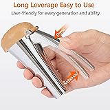 CONSTRUCTED WITH PREMIUM ZINC-ALLOY -This nutcracker tool crafted from heavy duty zinc alloy with integrated molding which is constructed to last and designed for cracking hard nuts :Nut crackers for pecans, macadamias, black walnuts, hazelnuts, walnuts, Brazil nuts. NOTE: Not intended for small nuts (pine nuts, pistachios) ERGONOMIC DESIGN - This nut cracker design for extended handle and rebound design. Easy and labor-saving to use for seniors and kids. PERFECT GITT - A premium, efficient tool for treating yourself or gifting to loved ones with limited hand strength. Ideal gift for Christmas, Thanksgiving, birthdays, housewarmings, weddings, or retirement celebrations — this thoughtful surprise will delight family, friends, colleagues, neighbors. PROTECTIVE CONTAINMENT LID -Traps shell pieces to minimize scatter and help keep counters cleaner. 360°PRESSURE, WHOLE KERNELS - Uniform force preserves kernel integrity; one-hand action lowers pinch risk.