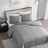 Vera Wang - Queen Comforter Set, Soft Cotton Bedding w/Smooth Cotton Percale Reverse, Lightweight for Year Round Comfort, 3 Piece Bed Set w/Matching Pillowcases (Woven Tucks Grey)