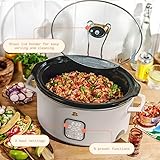 - The 6-Quart Programmable Slow Cooker by Drew Kitchenware combines elegance and performance for everyday home cooking. With its generous 6-qt capacity, it easily serves up to seven people—perfect for holiday feasts, family dinners, or meal prepping. Designed for convenience, the sleek touch-activated digital display only illuminates when needed and features a programmable timer (30 minutes to 24 hours). The cooker transitions automatically to a keep-warm mode for perfectly timed meals, freeing you to multitask without worry. Choose from five preset cooking functions—Meat, Poultry, Stew, Soup, and Chili—to simplify meal preparation, ideal for both beginners and busy households. Cleanup is effortless. The removable ceramic pot and tempered glass lid are both dishwasher-safe, and the included stainless-steel lid rest keeps your countertop tidy while serving. Cool-touch handles ensure safe portability from kitchen to table. Styled with soft matte finishes and signature gold accents, this slow cooker blends seamlessly into modern kitchens—making it not just a cooking tool, but a stylish countertop statement. Whether you're looking for a reliable slow cooker with preset versatility, customizable cooking, or dishwasher-safe convenience, this appliance delivers. Improve your daily cooking routine with design and user-friendly features that support hands-off meal prep.