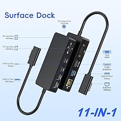 - Surface Pro Docking Station with Power Adapter, 11-in-1 Surface Dock Dual Displays 4K HDMI+VGA, Sur face Docking Station for Sur face Pro 11/10/9/8/X/7/7+/6/5/4/3, Sur face Book/Laptop/Go