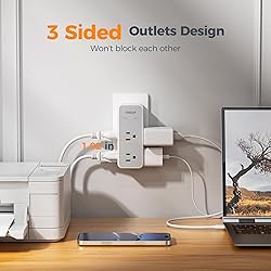 6 in 1 Multi Plug Wall Outlet: Plug extension outlet can be expanded to 6 AC Outlets (1875W MAX), accepting the standard N American 2 or 3 prong flat pin plug, charging 6 devices simultaneously, such as laptops, hair dryers, shaver and more Rotating Plug Outlet Extender: Featuring a 360 rotating plug design that allows the plug to be fixed at 90, 180, 270, and 360 degrees, outlet expander smoothly adapts to different orientations of the socket, maximizing the ease of your power connection 1800J Surge Protector Outlet: The electrical outlet can protect your electrical appliances, such as computers and other devices, from power surges; Multiple plugs in one outlet provides a secure and dependable charging environment Widely Spaced Outlet: Plugs for electrical outlet with 3-side design has 1.02 inch space between each outlet, can fit 6 large plugs at once without blocking each other, saving space; Suitable for bedroom, bathroom, kitchen, office and dorm room Suitable for Many Occasions: This wall plug extender can easily fit in tight spots and hide behind sofas, beds or other furniture, which makes it easier to use in any place with limited sockets, such as bedroom, kitchen, office or dorm