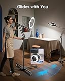 Ring Light with Stand & Lockable Wheels, Ring Light Tripod for iPhone with Phone Holder for Video Recording, Overhead Phone Mount, 30 Lighting Combinations, Perfect for Crafts/Live Streaming/Tutorials