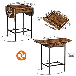 HOOBRO Bar Table, Folding Dining Table, 47.2-Inch Kitchen Table, Drop Leaf Extendabl Table with Outlets, Storage Drawer & Adjustable Feet for Kitchen, Rustic Brown and Black BF126UBT01