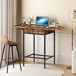 Flexible Folding Bar Table: This bar table features foldable drop leaf, Tabletop 23.6" can be expanded to 47.2". Prepare a weekend hearty get-together meal or have a light workday dinner, Switch between two modes with this folding table that extends or folds to seat 4 or 2 people. It effortlessly adapts to your space, ideal for both entertaining and everyday use With Storage Drawer: Keep your counter height area tidy, Our bar table includes a smooth-gliding drawer to organize remotes, utensils, or office supplies. This smart storage solution helps maintain a clean desktop surface,Extendable table when you invite your favorite friends over, all you need to do is to prop up the drop leave in a short time Powerful Charging Station Bar Table: This high top table has a built-in power strip with 2 AC outlets, 1 USB, and 1 Type-C port. You can conveniently power your devices during work or meals right at your bar table, eliminating cable clutter Sturdy & Stable Counter-Height Table: This counter-height table boasts a reinforced base and four adjustable feet. This robust structure ensures enhanced stability on uneven floors, making our bar table both secure and comfortable High-Top Table for Longevity: Built to last, this high-top table combines a sturdy metal frame with high-quality particleboard. The bar table promises enduring performance and reliable daily support, making it a durable and reliable addition to your home
