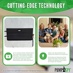 CUTTING-EDGE TECHNOLOGY: The Primary Sump Pump Backup Power System provides overcharge prevention. Once fully charged, the battery is maintained with a "trickle charge" to ensure it remains fully powered and ready for use. This item also includes a smart cooling feature for enhanced safety and extended life expectancy. HIGH PERFORMANCE: Never again worry about your basement during power outages! Our efficient backup unit generates a Pure Sine Wave 120 VAC voltage that is cleaner, quieter, and more stable. It has a 2000 Watt output and can power two primary sump pumps simultaneously with a combined current draw not exceeding 16.6 Amps. EXCELLENT RELIABILITY: The Primary Sump Pump Backup Power System safely and effectively powers your sump pump during a power outage. When the AC power fails, it switches to battery power and instantly recharges when the power comes back on. For convenience, it has two grounded outlets and a USB Charge Port. SEALED LEAD ACID BATTERY - You can now eliminate spilled acid from a tipped battery and hydrogen gas venting because our AGM 12v deep cycle battery is completely sealed, averting any form of leakage. BETTER CYCLING PERFORMANCE - Our Absorbent Glass Mat (AGM) Technology enables low internal resistance and high discharge currents. This valve regulated rechargeable battery 12v allows dependable operation in any position.
