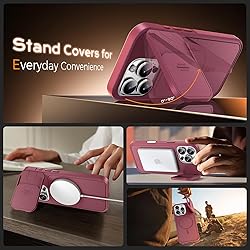 TOCOL for iPhone 16 Pro Max Case with Slide Camera Cover, Kickstand and Camera Control Button, Fit for MagSafe, Rugged Solid Phone Case, Non-Slip, Drop Protection, Wine