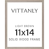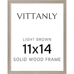 Vittanly 11x14 Picture Frame, Solid Wood Frame with Plexiglass, Includes 8x10 Mat, Wall Hanging for Photos, Home Decor, Light Brown, 1 Pack