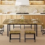 Einhomn 7-Piece Dining Table Set, 63" Extendable Kitchen Room Table with 6 Stools, Mid Century Modern Dinner Table with Metal Frame & MDF Board, Space-Saving, Easy Assembly, Rustic Brown