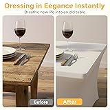 Lemict 2 Pack 8FT Rectangular Spandex Tablecloth,Wrinkle Resistant Fitted Cover for 96x30 inch Banquet Table Cloth, Washable Stretch Fabric for Party, Events, Wedding, Vendor - White