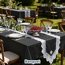 Heavy Duty & Stain Resistant Table Protector: Crafted from premium, high-density polyester, this durable table cover offers superior protection. It's designed to be highly stain-resistant, effectively guarding your dining table or folding table from scratches and accidental spills during any celebration or event. Elegant Wrinkle-Free Fabric for Any Occasion: Impress your guests with a smooth, seamless tabletop presentation. Our thick, wrinkle-free fabric drapes beautifully, providing a decorative touch for a wedding, birthday party, or baby shower. This reusable table linen elevates your decor instantly. Effortless Care & Reusable Table Linen: Simply machine wash in cold water and tumble dry on low. This washable tablecloth is designed for convenience and longevity, making it a more sustainable and cost-effective choice than disposable covers for catering, restaurant use, or frequent home entertaining. Ideal 7ft Fit for Dining & Banquet Tables: This 7-foot oblong tablecloth provides excellent coverage for standard rectangular and banquet tables. Its generous size ensures a graceful drop on all sides, creating a professional and polished look for vendor events, trade shows, or formal dining. Versatile Indoor & Outdoor Events Cover: Whether you're hosting an indoor holiday feast, a backyard picnic, or a professional catering event, this versatile table cover is your go-to solution. Its durable construction is suited for both indoor and outdoor settings, ensuring your setup always looks its best.