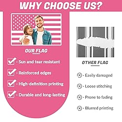 [Custom Flag] Personalised flags make your own flag.Whether it is a family photo, a cute pet photo, a team logo, or a quotation of meaning, it can be clearly presented. You can also freely choose font styles and colors to make every detail fit your heart. Tip: Because the flag is large in size, to ensure visual effects, please upload high-definition and blur-free pictures! Click "Customize Now" to enter the design page and easily select your exclusive style [custom image flag] malachi barton flag provide two printing options to meet your different needs - Single-sided printing: single-layer fabric material, light texture, can naturally float when breeze blows, bright and full colors, suitable for scenes that pursue agile decoration; double-sided printing: three-layer fabric craftsmanship, thicker and more durable, with the pattern of the front and back sides completely consistent, without fear of wind and rain, suitable for long-term outdoor display or high-frequency use [High-quality material] Customized flag is made of high-quality polyester fabric, with a light texture, which can naturally float when breeze blows. custom wall flag with advanced printing technology, the colors are bright and long-lasting and are not easy to fade. Note: The packaging does not include flagpoles, and it needs to be prepared separately [Suitable scenarios] This pink american flag custom with picture is a "atmosphere artifact" that is common indoor and outdoor! Hang customize flag on the wall of the living room to decorate the home, place it in the bedroom to record warm memories; or stand on the outdoor lawn, balcony, and corridor to become the dazzling scenery of the courtyard; hanging custome flag during parties and festivals can instantly fill the sense of ceremony. No matter where it is, banners and signs personalised is the most unique focus decoration [Customer first] We always focus on high-quality products and considerate services, just to leave you a satisfactory customization experience. From design to printing, every step is carefully controlled. If you have any questions or needs, feel free to contact us and we will answer you as soon as possible